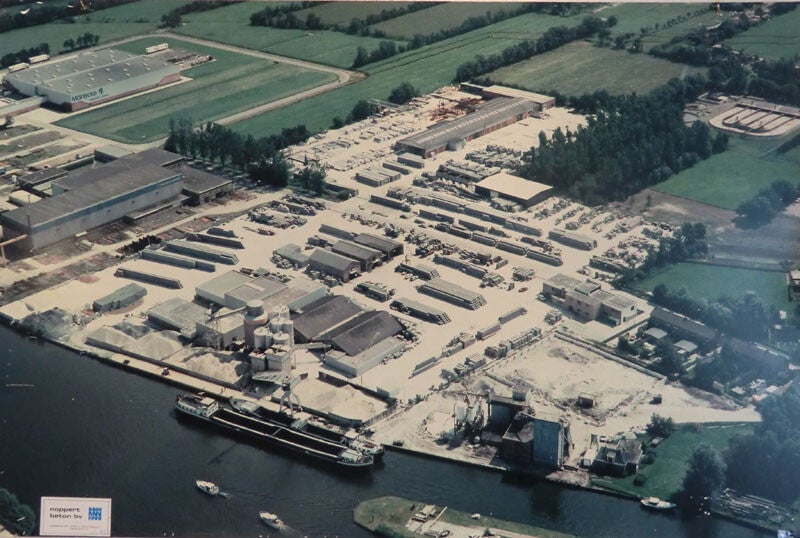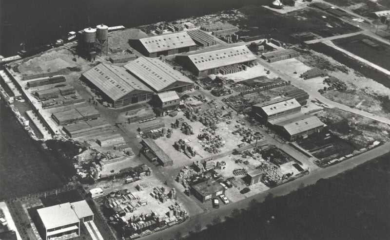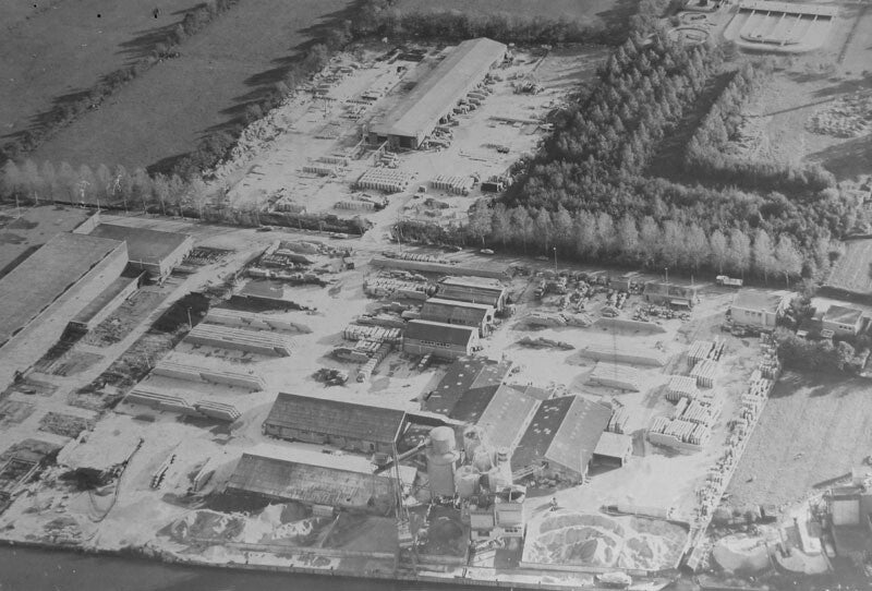 Luchtfoto van Noppert Beton in Sumar uit de beginjaren. Nu terrein Provinciale Waterstaat.