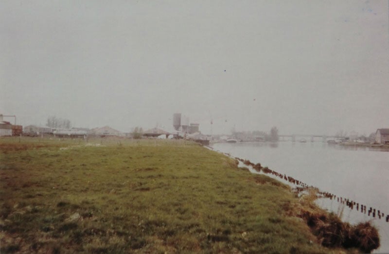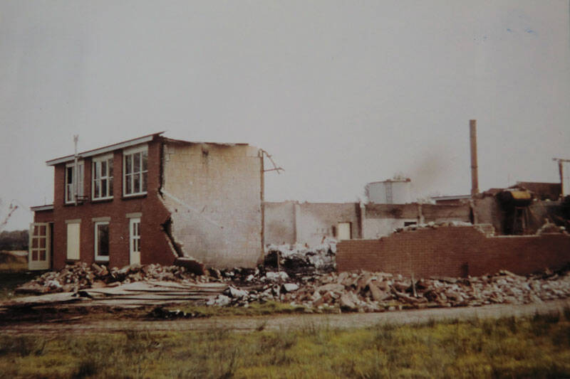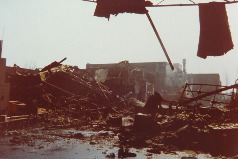 Papierfabriek Friesland aan de Solcamastraat na de verwoestende brand in 1982.