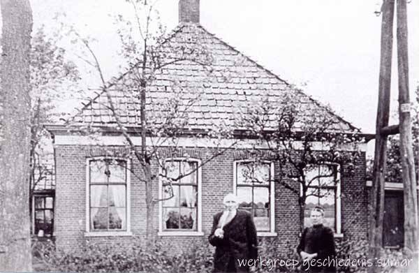 F00583 Links IJbeltje Kooistra met haar vader(lange witte baard). Ca.1910.Woning werd verkocht aan Charles M. Nijveen die er een slagerij/rokerij in vestigde.