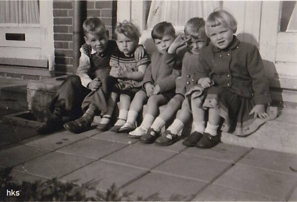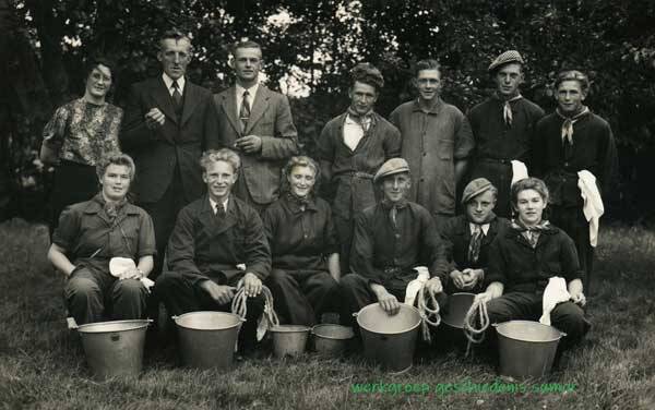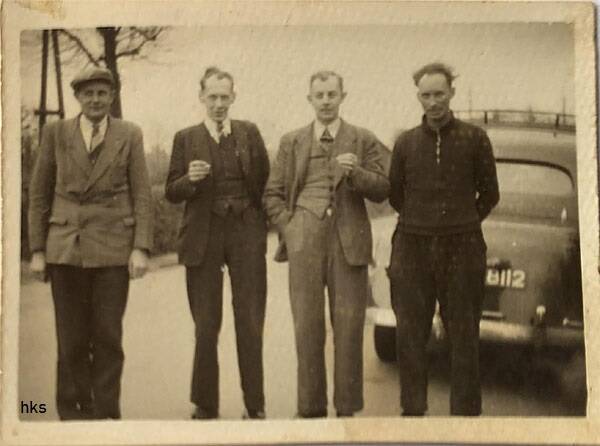 F04479 Vlnr Jan (of Harm) Teunissen, Gjalt van den Berg(?), Roel Teunissen en Johannes van der Wal.
