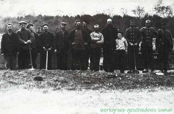 F01889 Arbeiders bij de aanleg van de trambaan over Sumarreheide.