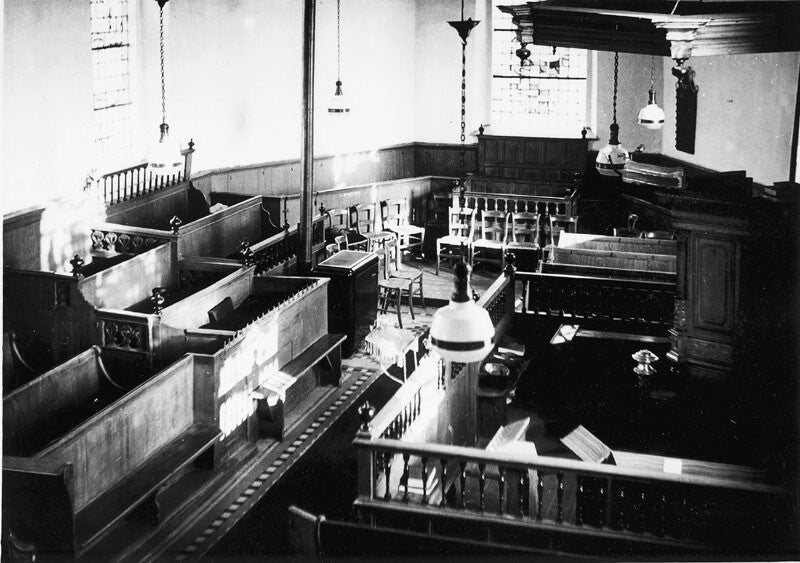 Interieur van de Nederlands Hervormde Kerk in Sumar, Greate Buorren 14, voor de restauratie in 1964.