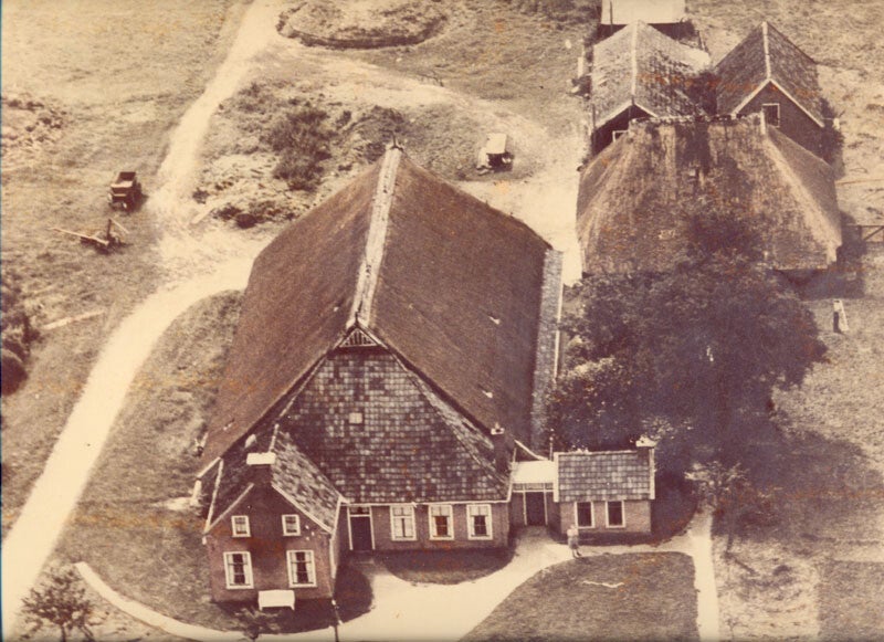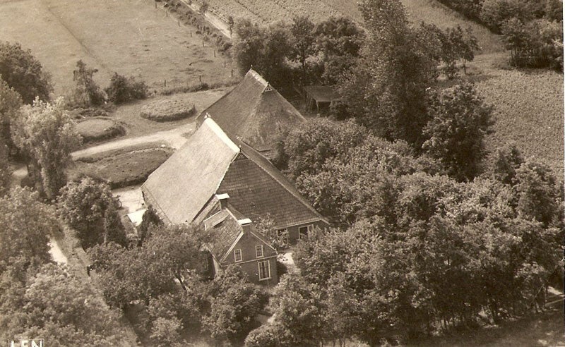 ▲ F02875LFN-luchtfoto Heerenweg 6 de Harste, Matrassenfabriek Minerva.