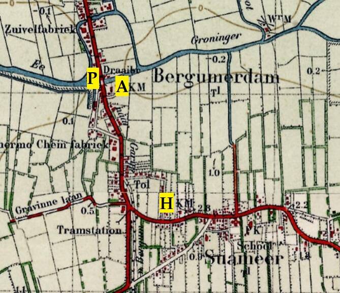 De molen van Aalfs (A) werd in 1904 aan de zuidzijde van de Groningervaart gebouwd. De molen, afkomstig uit Dronrijp, werd herbouwd in Sumar. In 1927 werd overgeschakeld op motorische kracht en werden de wieken verwijderd. De romp van de molen werd 1995 gesloopt.
