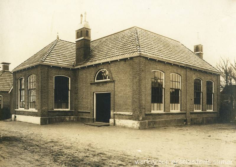 F01250 Heideskoalle met links onderwijzerswoning, Heerenweg.